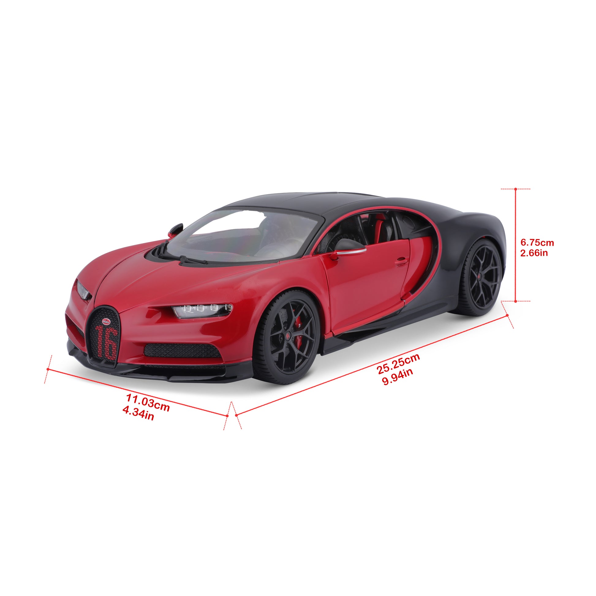 Questo modello si distingue per la livrea rossa e nera dall’aspetto aggressivo e raffinato, arricchita da porte e cofano apribili che permettono di esplorare l’abitacolo e i dettagli meccanici interni. La licenza ufficiale Bugatti garantisce l’accuratezza del design e la qualità costruttiva, rendendolo perfetto sia per esposizione che per momenti di gioco realistico.